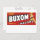 Vintages Fruchtkäfiglabel für Buxom Brand Melons aus Yuma, Arizona.