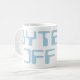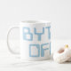 Bold geometric "BYTE OFF" made from shimmering blue hexagons on a deep black background—perfect for tech lovers, coders, and cyberstyle fans who want a sleek, modern statement tee or sticker that reads like a pixel-powered slogan.