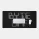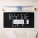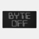 Bold geometric "BYTE OFF" made from shimmering blue hexagons on a deep black background—perfect for tech lovers, coders, and cyberstyle fans who want a sleek, modern statement tee or sticker that reads like a pixel-powered slogan.