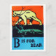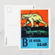 Charles Buckles Falls - B ist für Bären, Holzschnitt, 1923. Eine Seite aus einem ABCs-Buch aus dem Jahr 1923, diese farbenfrohe Abbildung zeigt mutig einen Bären, der sicher an allen Vieren an einem toten Holzgeländer mit einem orangefarbenen Himmel und blauen Lichtern anschlägt. Spaß: Der schwarze Platz in der Ecke ist die Signatur des Künstlers.