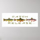 FANG UND FREIGABE. Alle 3 Forellen - braun, braun, Regenbogen. Alles in ihren schönen Farben. Für Fliegenfischer, Fliegenflieger, Ichthyologen auch. Gutes Geschenk für ihn oder für sie - jederzeit!