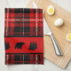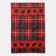 Rot und Schwarz kariert mit einem roten Streifen, schwarzen Bären und Bäumen.