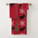 Mit diesem rustikalen Badetuch-Set dekorieren Sie Ihre Kabine. Das Set ist mit Elch, Schneeflocke und Kiefernbäumen auf einem weihnachtroten Hintergrund gestaltet. Kaufen Sie dieses festliche Handtuch-Set, um das Aussehen Ihres Urlaubsbads zu aktualisieren oder als Geschenk für diese besondere Person.