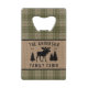 Un ouvre-bouteille à thème rustique, avec votre nom de famille et cabine, lodge, cottage ou autre texte souhaité et sa date d'établissement. Ce design unique et personnalisé présente une silhouette d'orignal et de pins sur un imprimé de style burlap, accentué par de beaux paysages français recouverts de doux tons d'herbe et de vert sauge. Pour voir d'autres modèles comme celui-ci, n'hésitez pas à visiter ma boutique ici à "Zazzle.com/Rustic_Charm". Merci .