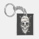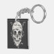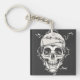 Un crâne humain enveloppé de fil barbelé. Cette conception semble vraiment efficace sur ce Porte - clé