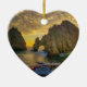 An der Vorderseite dieses Ornaments befindet sich der Bogen am Ende des Landes bei Sonnenuntergang. Auf der Rückseite ist schwarzer Text, der "Cabo San Lucas" lautet. Sie können mit einem Datum, wenn Sie wählen, anpassen.
