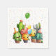 Gruppe von Sukkulenten mit Party Ballons und Konfetti auf weißem Hintergrund.
