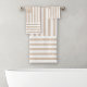 Conception de rayures nautiques à monogramme personnalisé avec un fond de rayures beige et blanc. C'est un style intemporel, minimaliste et classique pour la salle de bain. Une idée de cadeau personnalisé parfait pour une fête de pendaison de crémaillère ou un couple de jeunes mariés.🦋
