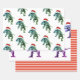 DEUX DES FEUILLES PLATES SONT DES ILLUSTRATIONS DE DINOSAUR VINTAGES PORTANT LA FEUILLE DE HATSONE DE PÈRE NOËL SONT BRILLENT ROUGE ET BLANC