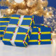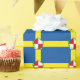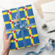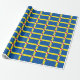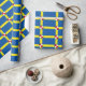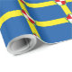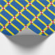 Papier à envelopper avec design avec un drapeau du comté historique de Pembrokeshire, au Pays de Galles, Grande-Bretagne; drapeau bleu azur avec croix jaune et rose Tudor blanc dans le centre