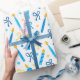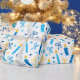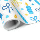 Ce papier d'emballage moderne et tendance est fabuleux ! Il a des bougies bleues et or, des étoiles de David et des arcs. Obtenez assez pour envelopper tous vos cadeaux.