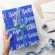 Des nuances de bleu, de bleu bébé et de blanc avec un thème de religion juive pour les fournitures d'emballage cadeau. Joyeux Hanoukka papier d'enveloppement blanc et bleu.