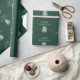 Un motif moderne de Noël peint en blanc sur un papier vert festif.