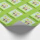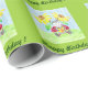 Un papier d'emballage d'anniversaire vert enfant avec l'illustration en carreaux d'une coccinelle lisant un livre sous deux fleurs jaunes et les mots "Joyeux anniversaire" écrits en dessous. Parfait pour un anniversaire de printemps :) © ArianeC Illustrations