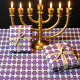 Cadeau Menorah violet sur papier d'enveloppement arrière