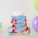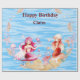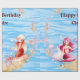Joyeux papier d'emballage d'anniversaire avec une queue rose et une sirène de queue rouge