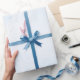 Cadeau papier d'aquarelle bleu Arrière - plan