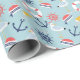 Ce papier d'emballage à thème de plage nautique est sûr de faire un splash à n'importe quel événement. Avec des mouettes, des ancres, des coquillages, des bouées et plus !