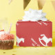 Papier d'emballage de basculage de l'enfant de Noël rouge de cheval. Enveloppe de cadeau mignonne pour de petits enfants. Ajoutez votre propres nom et saisons personnalisés saluant comme le Joyeux Noël ou bonnes fêtes. Approprié au garçon ou à la fille. L'emballage à la mode roule avec la finition brillante ou mate.