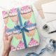 Joli papier d'emballage d'anniversaire avec un motif de cupcake design. Donnez votre cadeau d'anniversaire avec ce joli papier d'emballage de cupcake.