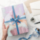 Cet adorable papier d'emballage rose pour bébé est livré en rouleaux brillants ou mat et de tailles différentes.