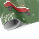Papier d'emballage de camion de Noël avec des voitures rouges vintage sur arrière - plan vert naturel avec des flocons de neige. Ajoutez votre propre texte avec l'outil Zazzle facile à utiliser ! Visitez le magasin pour voir toute la collection.