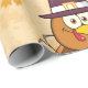 Un oiseau dans un casquette tenant une tarte d'action de grâce. Cette conception semble vraiment efficace sur ces papiers d'enveloppement