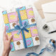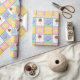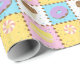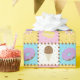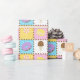 Satisfaites votre dent sucrée avec ce motif coloré qui propose de savoureuses friandises comme un cône de crème glacée au chocolat, un beigne de chocolat mauve, un macaron jaune citron, et une sucrerie tourbée rose et blanche séparée par des chips de chocolat et entourée de saupoudrées d'arc-en-ciel sur quatre carrés aux couleurs vives.