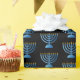 Ce papier d'emballage célèbre Hanoukka avec une empreinte de menorah sur une couleur arrière - plan noire. Customisez cet objet ou achetez tel quel.