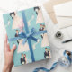 Papier enveloppant avec une belle photo de couple sur un arrière - plan bleu. Customisez cet objet ou achetez tel quel.