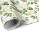 Le papier d'enveloppement est présenté avec une belle impression florale de roses blanches. Customisez cet objet ou achetez tel quel. Impression sous licence