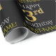Ce design papier d'emballage comporte un message comme "HAPPY 3rd BANTHDAY", avec le "3rd" ayant une apparence fausse/imitation or. Il comporte également un nom personnalisable et un arrière - plan de couleur noire. Il pourrait peut-être être utilisé pour envelopper les cadeaux donnés pour le troisième anniversaire de quelqu’un. [~Z0000130]