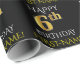 Ce design papier d'emballage comporte un message comme "HAPPY 6th BIRTHDAY", avec le "6th" ayant une apparence fausse/imitation or. Il comporte également un nom qui peut être customisé, et un arrière - plan de couleur noire. Il pourrait peut-être être utilisé pour envelopper les cadeaux donnés pour le sixième anniversaire de quelqu’un. [~Z0000130]
