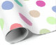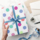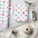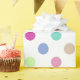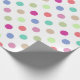 Vous adorerez les grands pois pastel qui remplissent ce papier d’emballage ! Un mélange de menthe, de fuschia et de corail égaye tout cadeau.