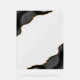 Un panneau chic et élégant pour accueillir vos invités de mariage à votre table de cadeaux. Le mot "cadeaux" apparaît en calligraphie manuscrite blanche, avec l'invitation "veuillez en prendre un" en dessous dans une police serif. Des dessins d'agate à l'aquarelle noire encadrés de fausse brillance dorée encadrent le message dans deux coins. Consultez notre collection pour une suite d'invitations de mariage et de papeterie assorties.