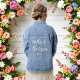 Manteau en jean pour la mère du marié pour la douche de mariage avec texte blanc. Plus de produits avec ce design sont dans la collection ci-dessous.