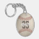 Cette chaîne de frappe de baseball présente l'image réaliste d'une balle de baseball sale avec un nom de joueur et un numéro de maillot faciles à personnaliser sur le devant ainsi que le nom de l'école et le nom de la mascotte sur le dos - par katz_d_zynes