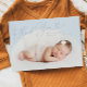 Carte faire-part de naissance simple avec cadre en arc blanc avec photo de votre nouveau-né. Le texte dit "merci" en caractères de script avec un coeur.