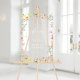 Un joli panneau de bienvenue en acrylique pour la douche de mariée avec des fleurs florales pastel, avec un cadre de fleurs sauvages à l'aquarelle. Le mot "bienvenue" est écrit en police de style calligraphie moderne blanche.
