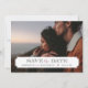 Carte de mariage moderne et chic avec photo pour annoncer la date. Le modèle comprend un espace pour l'une de vos photos de fiançailles avec un cadre classique simple où vous pouvez ajouter la date du mariage ainsi que les noms des mariés. Il y a de la place au verso pour ajouter du texte supplémentaire si nécessaire. Utilisez les outils de conception pour personnaliser les polices, déplacer le texte, changer le type de papier et la couleur de fond pour créer votre propre modèle unique.
