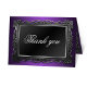 Cadre gothique violet Merci Cartes avec un thème gothique avec l'impression d'une image de cadre métallique grise ornée à l'avant et à l'intérieur, avec un dégradé violet à noir, et "Merci" sur un dégradé gris foncé à noir. L'intérieur est imprimé sur mesure avec votre propre message de remerciement personnalisé, ou peut facilement être supprimé pour laisser le message intérieur vide pour écrire à la main vos sentiments de gratitude. Idéal pour Halloween, gothique, ou mariages et Fêtes des mariées thématiques, ou sentiments quotidiens.