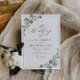 thème verdure avec cadre géométrique feuilles eucalyptus de verdure. Le texte et les couleurs peuvent être personnalisés pour correspondre à votre thème mariage.