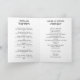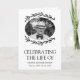 Programme funéraire plié blanc avec des polices noires élégantes. Sur la couverture, une photo de votre être aimé avec son nom et ses années de vie. A l'intérieur, vous pouvez écrire la nécrologie et le programme. Au verso, vous pouvez ajouter des accusés de réception. Programme de célébration de la vie personnalisé avec une photo ovale de votre bien-aimé encadrée par la verdure.