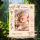 Cadre photo aigu avec un design mignon avec des oiseaux et des fleurs, de minuscules pas et le soleil. Super d'accueillir un nouveau bébé dans ce monde.