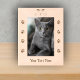 Ce cadre d'image en bois gravé a un visage de chat gravé noir avec les yeux et de longs murmures en haut et des rangées d'empreintes de pattes de chat noir sur les côtés Customisent votre texte avec le modèle en bas.