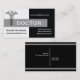Caduceus Doktor moderne, minimalistische schwarz, weiß, grau Visitenkarte mit einem schwarzen Caduceus Arzt Zeichen auf weißem und schwarzem Hintergrund und der Text "DOCTOR" in einem grauen Band. Perfektes berufliches medizinisches Visitenkartendesign für Ärzte.