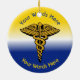 Dieses Ornament ist auf der einen Seite mit einem goldenen Caduceus und einem Ort für benutzerdefinierte Wörter Ihrer Wahl und auf der anderen Seite mit einer Tüte Goodies dekoriert. Eine tolle Geschenkidee.