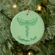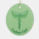 Single Schlange Kadukeus mit Minze Blätter. Benutzerdefinierte Hintergrundfarbe. Benutzerdefinierter Text auf beiden Seiten.