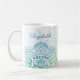 The Caelum Mandala 11 oz. Personalized Mug, in a palette of botanical greens and a touch of sky blue, brings an element of mindfulness to your morning routine, or any time you need that sustaining cup of coffee, tea, or hot chocolate. Would also make a thoughtful gift for your favorite yoga teacher. Available in a 15 oz. version as well.
