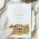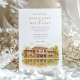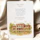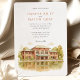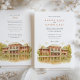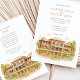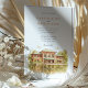 Mit dieser charmanten Wasserfarbenhochzeitseinladung laden Sie Ihre Gäste zu einem schönen Fest ein und stellen das historische Café Brauer im Lincoln Park von Chicago vor. Das Kunstwerk spiegelt die prairische Architektur des Gebäude mit seinen markanten Akzenten aus rötlich-braun/terracotta-Ziegeln und grünem Dach (insbesondere dem großen Markisen), die sich wunderbar im ruhigen Wasser des angrenzenden Teiches oder der Lagune widerspiegeln. Der Ort ist von üppigen Bäumen umgeben, deren Blätter in grünen, goldgelben und hellbraunen Farbtönen dargestellt sind, was auf ein Ambiente im Spätsommer oder Frühherbst hindeutet. Diese Einladung in einem sanften, einladenden Aquarellstil ist ideal für Paare, die eine elegante und natürliche Umgebung für ihre Hochzeit in Chicago suchen. Die Vorderseite präsentiert elegant Ihre Hochzeitsdetails, während auf der Rückseite die "Finer Details" für die Gästebuchsinformationen zur Verfügung stehen, um das malerische Kunstwerk zu erhalten. Die Farbpalette umfasst warme rötlich-braune Farben, Terrassen, verschiedene Grüntöne, goldgelbe Gelbtöne, hellbraune Farbtöne und weiche Wassertöne.